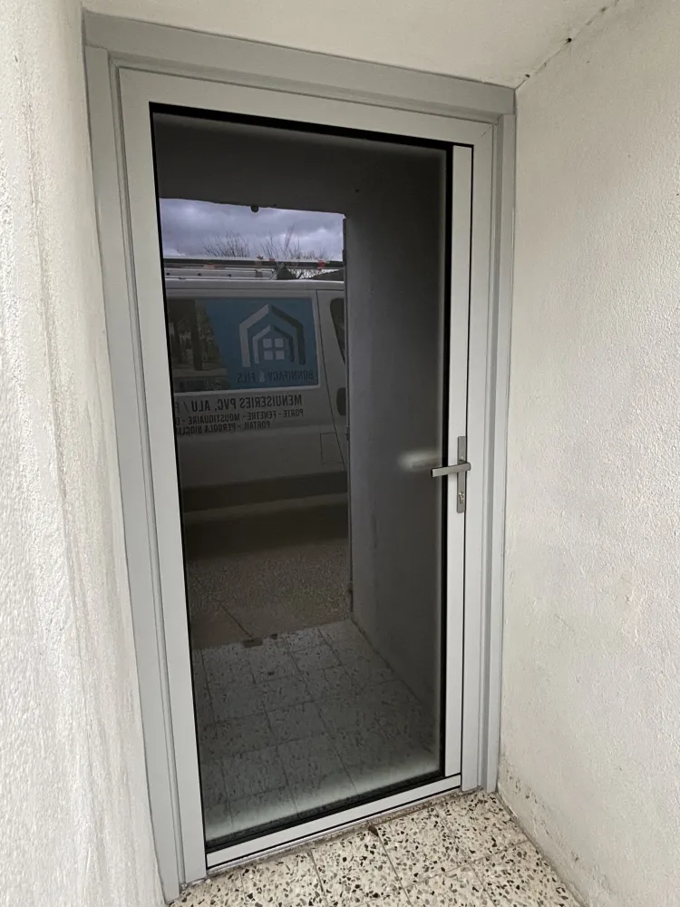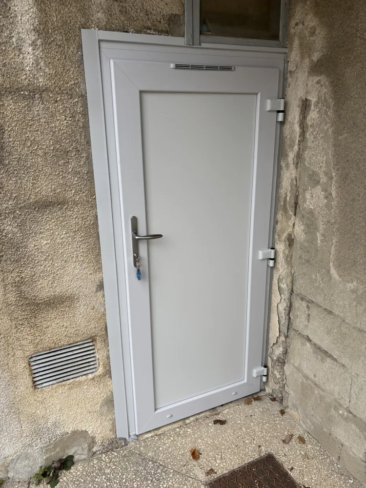 Installation d’une porte de service en PVC, pratique et résistante, idéale pour un accès secondaire. Le PVC offre une très bonne isolation thermique et un entretien facile au quotidien.