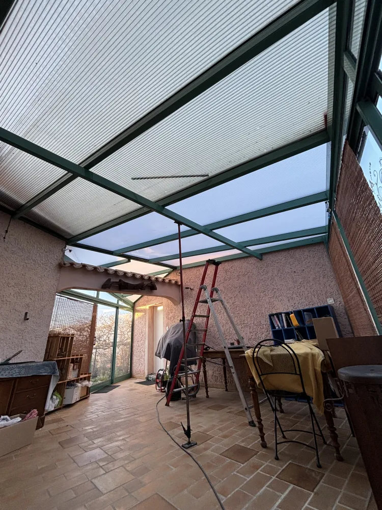 - Pose de nouvelles plaques de couverture adaptées aux toitures de véranda